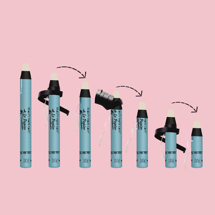 - Quando a ponta do batom estiver pequena, puxe a fita do lápis até que a ponta do bálsamo esteja visível e seja fácil de aplicar.