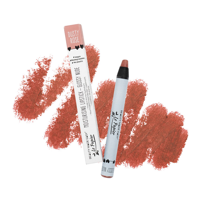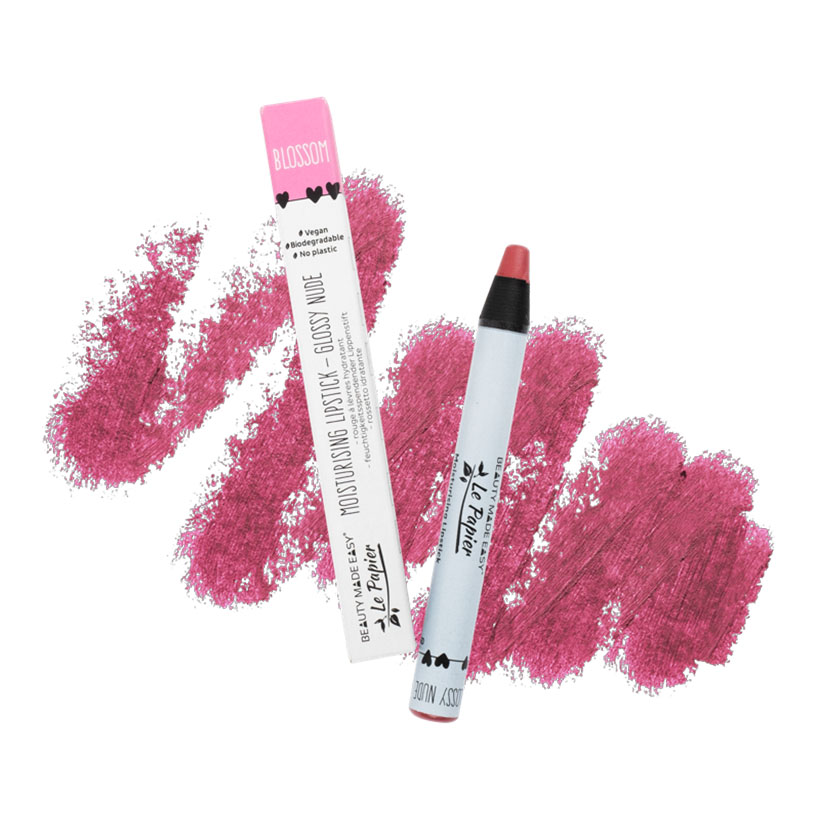 Batons glossy em lápis com embalagem exclusivamente em papel.