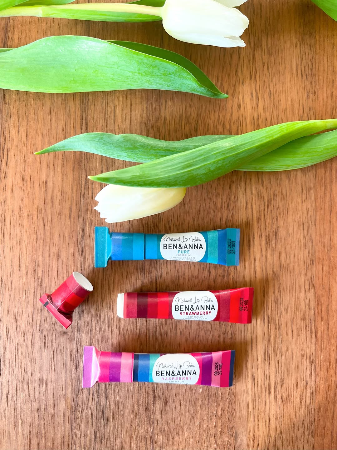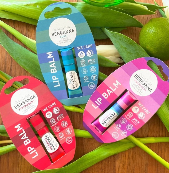Os bálsamos labiais Ben&Anna são ricos em óleos vegetais, vegan e sustentáveis.