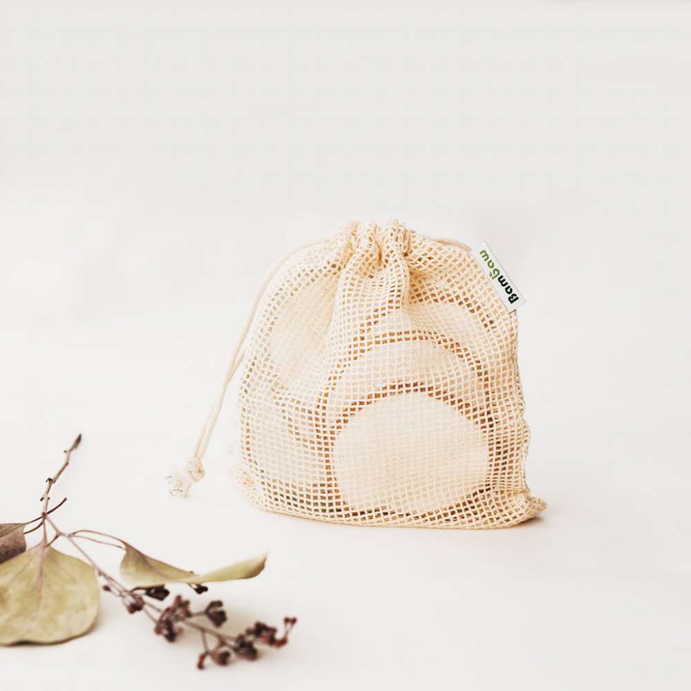 Este saco de algodão é feito especificamente para lavagem dos discos desmaquilhantes reutilizáveis, mas também pode servir para lavar outros tecidos mais delicados.