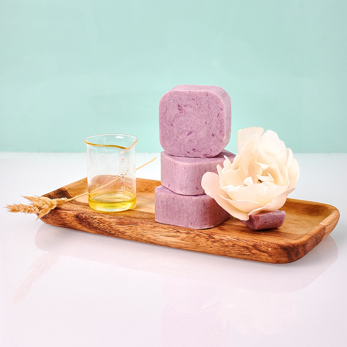 Champô Sólido de Oliva & Rosa, produzido com manteigas bio e óleos vegetais que nutrem o teu cabelo e não irritam o couro cabeludo, e a fórmula é ainda enriquecida com vitaminas e proteínas vegetais que protegem o teu cabelo.