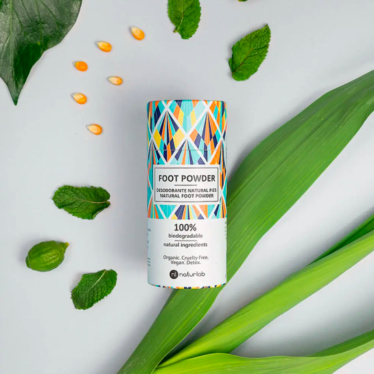 O FOOT POWDER da naturlab elimina a humidade e o mau odor nos pés, sapatos e nas axilas.