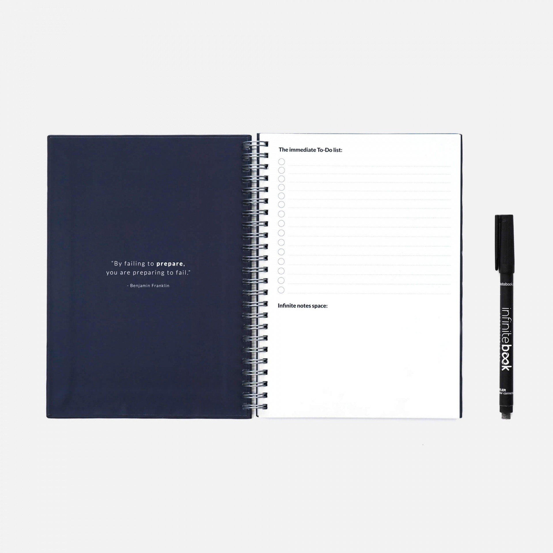 Home Casa Infinitebook Planner A5 - Disponível em Azul e Preto Infinitebook Planner A5 - Disponível em Azul e Preto Cor: Azul Preto 22,90 € Desconto de %. IVA incluído. Comprar Contactar Adicionar à wishlist Caderno Planner A5 que te vai servir de agenda e permitir organizar o teu dia a dia. Incluí um marcador preto de ponta fina (0.6 mm). Páginas: 2 Listas de Tarefas 10 Planeamento Semanal 1 Ano em Semanas 1 Planeamento Mensal 22 Lisas (Total de 18 Folhas) Características: Tamanho: A5 (148x210mm) Capa: Dura Peso: 330g Argolas: Espiral Preta Partilhar