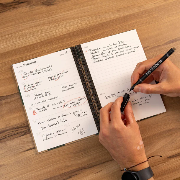 Home Casa Infinitebook Planner A5 Green Flow Infinitebook Planner A5 Green Flow 22,90 € Desconto de %. IVA incluído. Comprar Contactar Adicionar à wishlist Caderno Reutilizável: Escreve, apaga e reutiliza sempre que precisares. Planeamento: Organiza a semana, o mês e o ano, e acompanha os teus hábitos Estrutura com Liberdade: Espaço para tarefas, rascunhos e objetivosVai Contigo Para Todo o Lado: Compacto e resistente, ideal para uso diário Páginas Incluídas: 1 Página de Rascunho 5 Semanas + Listas de Tarefas 3 Planos Mensais 1 Ano por Meses 1 Habit Tracker 8 Folhas Pontilhadas Total: 18 Folhas Tamanho: A5 (148x210mm) Partilhar
