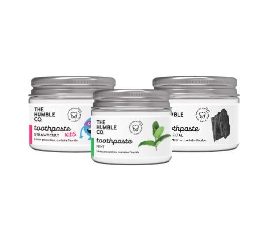 PASTAS DE DENTES NATURAIS THE HUMBLE CO - FRASCO DE VIDRO