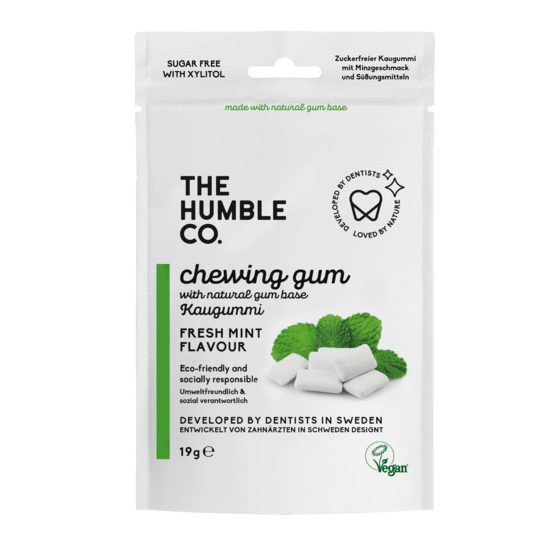 As Pastilhas Elásticas Naturais The Humble Co. são naturalmente boas para os dentes e hálito, sendo úteis na prevenção de cáries.