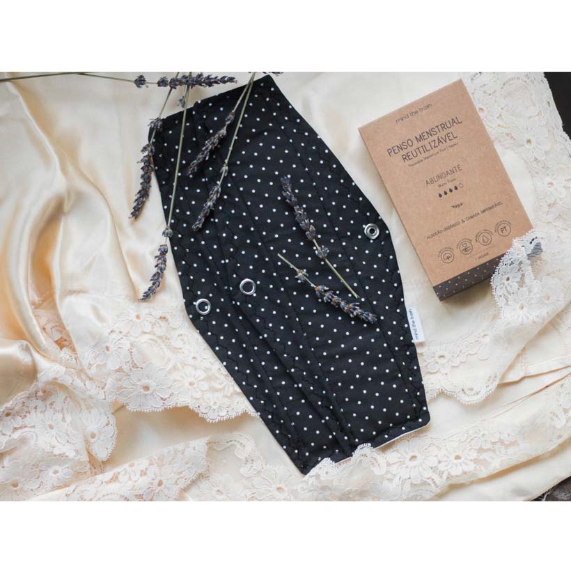 Penso menstrual reutilizável feito sem desperdício de tecido.