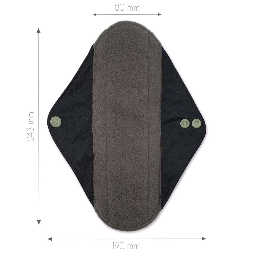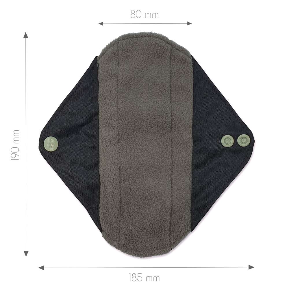 Todos os pensos menstruais reutilizáveis são pretos e feitos de três materiais: