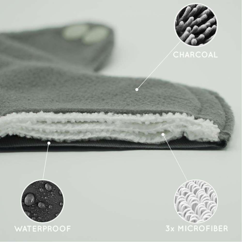 - Carvão de bambu para uma sensação seca e macia, bem como controlo de odores