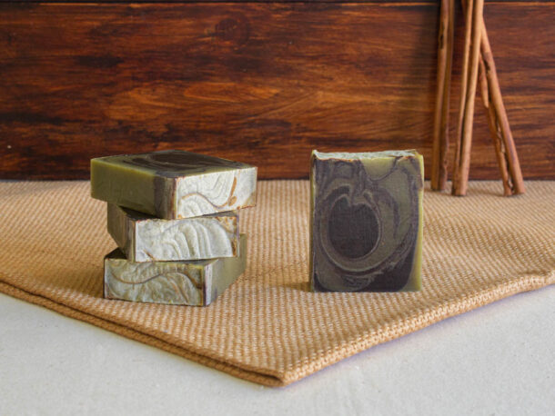 O Sabão artesanal de Cacau e Menta limpa em profundidade, nutre, hidrata e refresca.