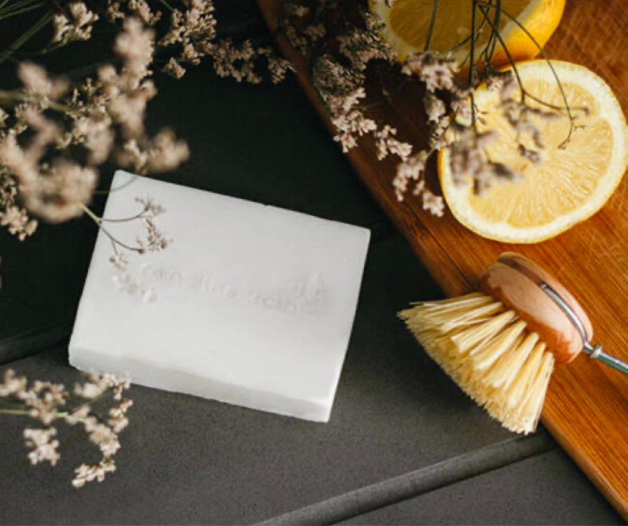 O sabonete para a loiça da Mind The Trash é feito artesanalmente com ingredientes orgânicos, deixa um aroma no ar devido aos óleos essênciais utilizados.