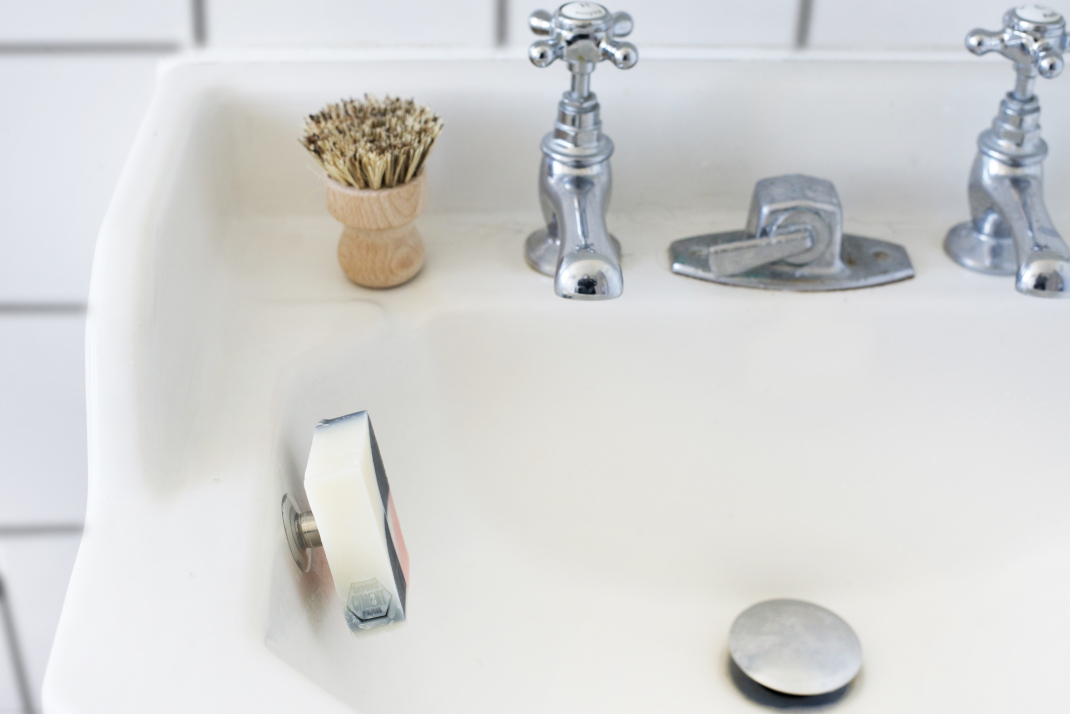 Não devemos puxar o sabonete, mas sim rodá-lo para o desprender da ventosa.